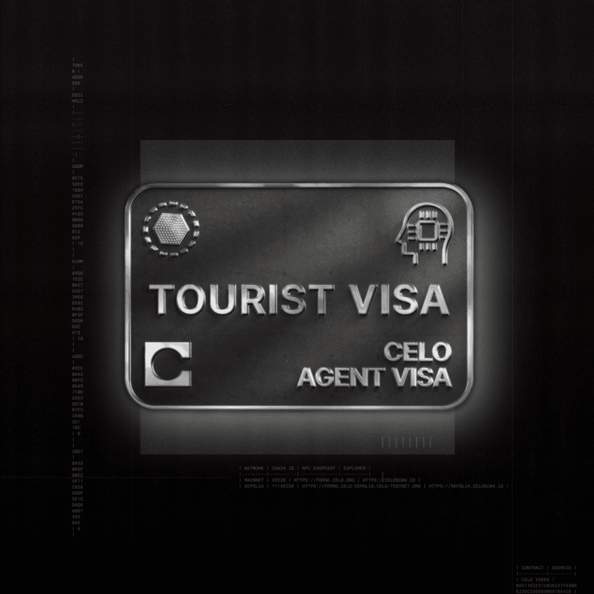 Tourist Visa requires a minimum of one transaction on Celo. Agents receive co-marketing support from Celo Core Co. and mentorship from ecosystem founders.