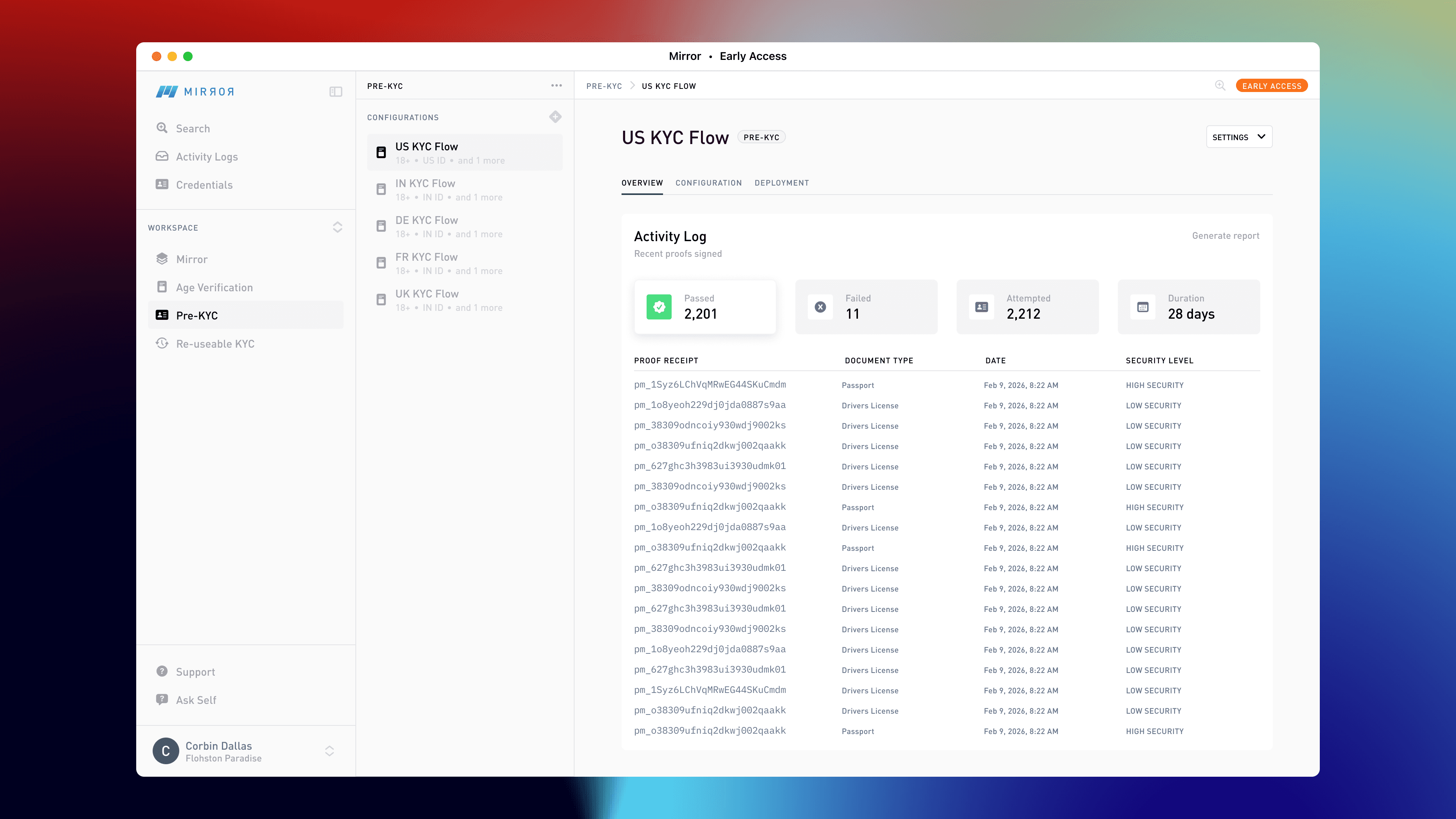 For teams running waitlist campaigns or launching in new markets, Pre-KYC also functions as an eligibility pre-screen before a full rollout, letting you qualify an audience without triggering compliance processes for users you can't yet onboard.